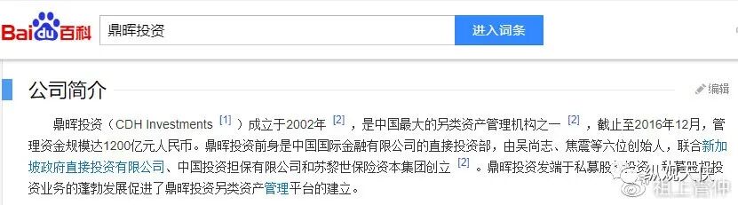 图4 “鼎晖投资”百科介绍