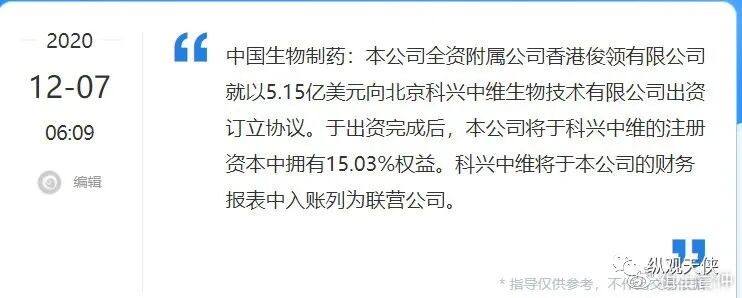 (1)香港俊领有限公司,背后的实际控制人是“中国生物制药(01177.HK)”,拥有15.03%的股权。