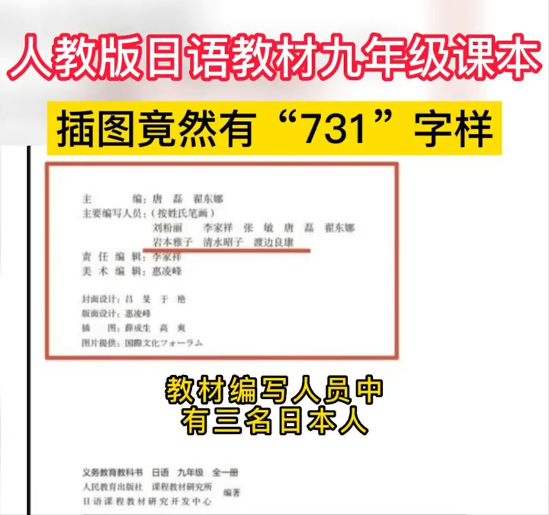 近日人教版九年级的日语教材,又深陷出现“731”字样以及国鸟之争的丑闻中,这是纯属巧合,还是别有用心?