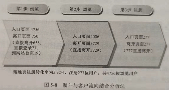 传统的漏斗模型只有用户大致的流程走向,而缺少在流程的每一个步骤中用户流失的具体信息。然而,这些信息对于分析用户注册流程、规划用户转化路径是十分必要的。因此,漏斗与客户流向结合分析法就显得尤为重要了。