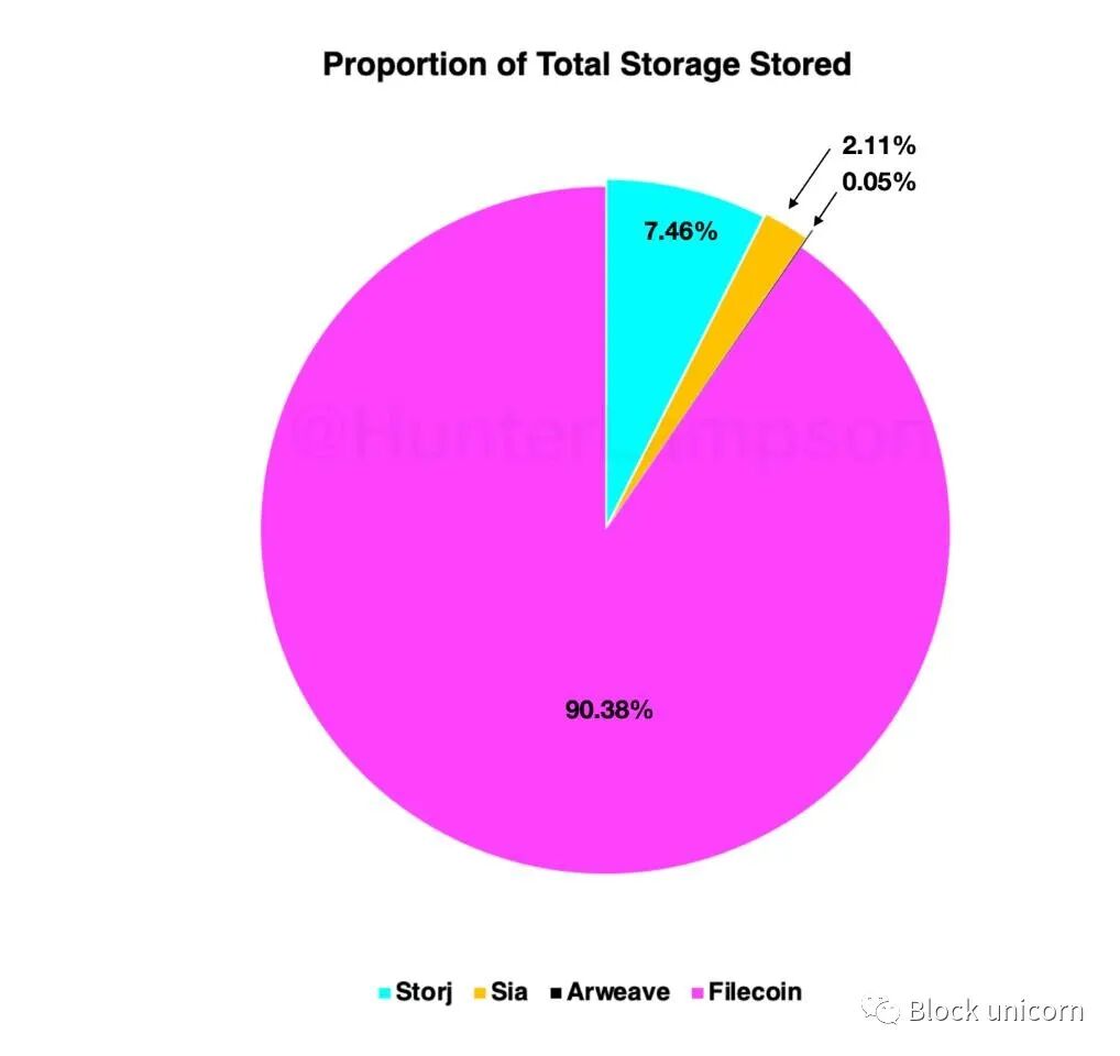 图 9. 存储的 DCS 数据市场的比例。资料来源:Storj Stats、SiaStats、Viewblock、File.app、Hunter Lampson。