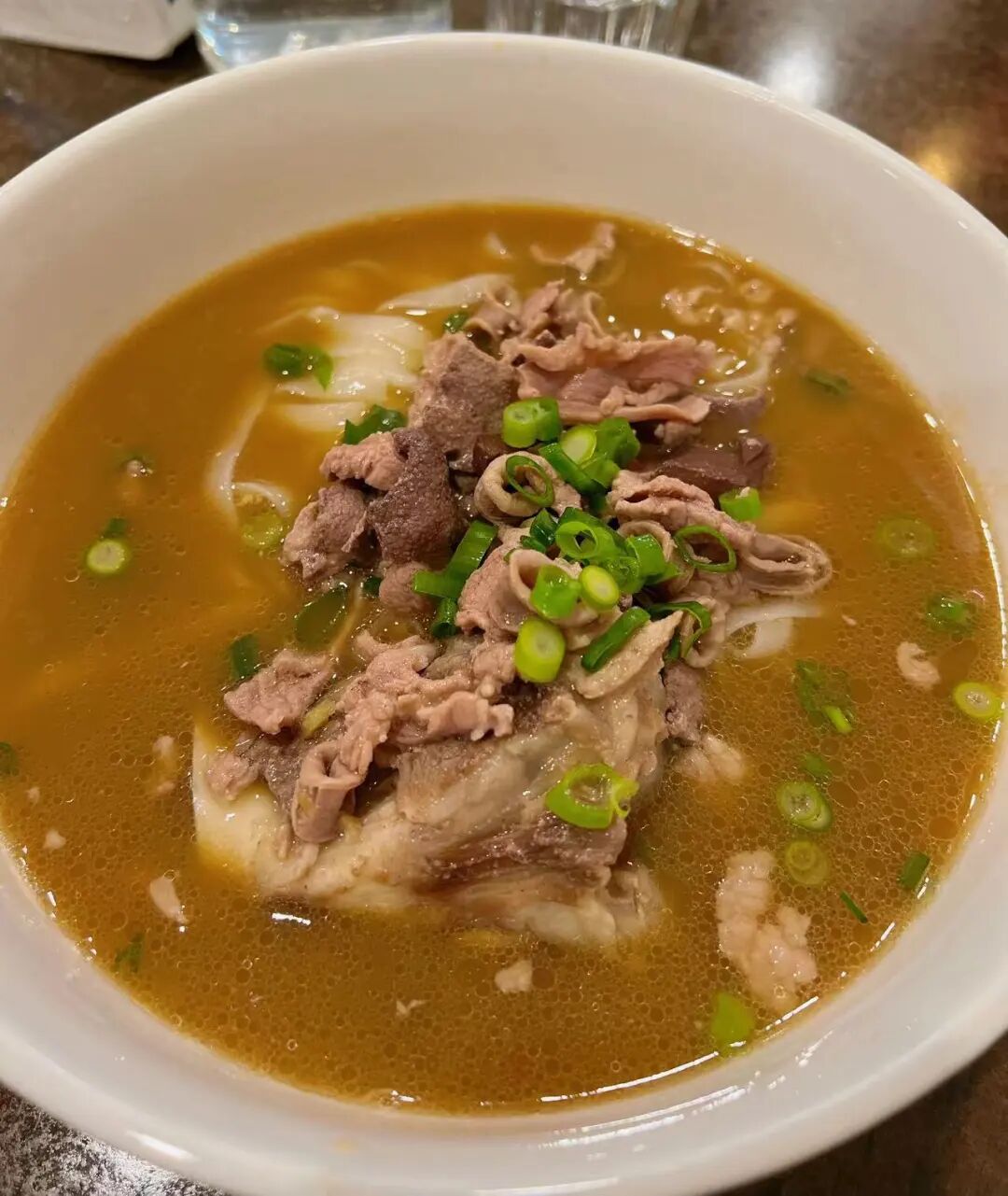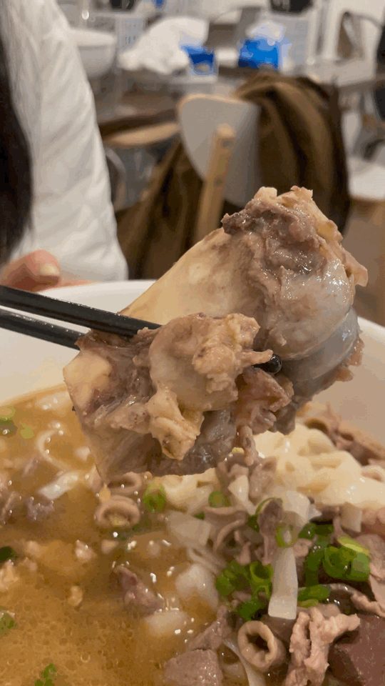 这碗粉虽然看着平平无奇,但它的牛肉着实惊艳墨妮卡了!牛肉肥瘦相间(瘦肉居多),而且还有肉筋在里面。每一块牛肉都软烂入味,这菜码盖饭也会很好吃!