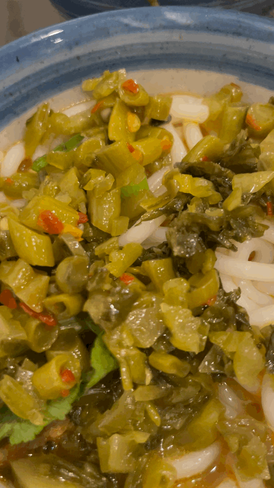 墨妮卡这碗选得【细粉】,比挂面还细的米粉很吸汤汁,每一口都是酸爽的汤底味道,喜欢吃重口味的宝贝们,可以选细粉,再加上酸豆角+剁椒小料,保证你一碗粉下肚,浑身冒汗!