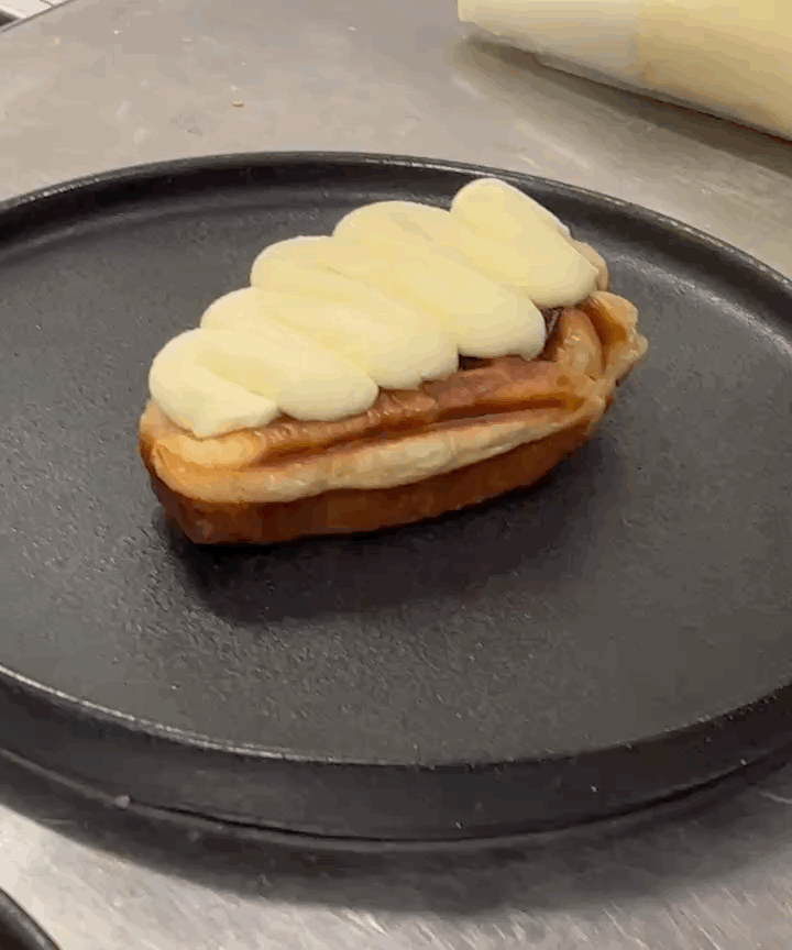 牛角包(Crossant)的酥松口感融合华夫饼(Waffle)的香甜味道,奇特又好吃Croffle就诞生啦~