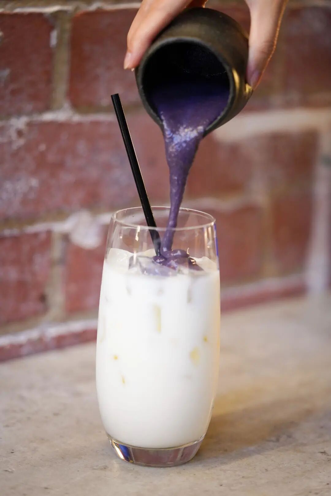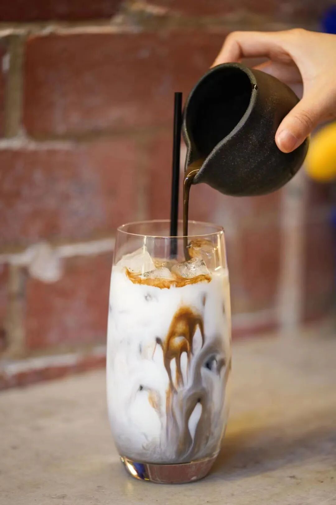 将烘焙茶浆倒入清爽冰凉的牛奶中,炭火烘焙过的茶叶透出满是暖意的茶香,是嗅觉和味觉上双重吸引。看着茶浆流入杯中形成大理石般的纹路是不是立刻就想试试?别急,搅拌之后深色的茶浆慢慢与牛奶渗透变成浅浅的咖色,此时才是最佳品尝时间!