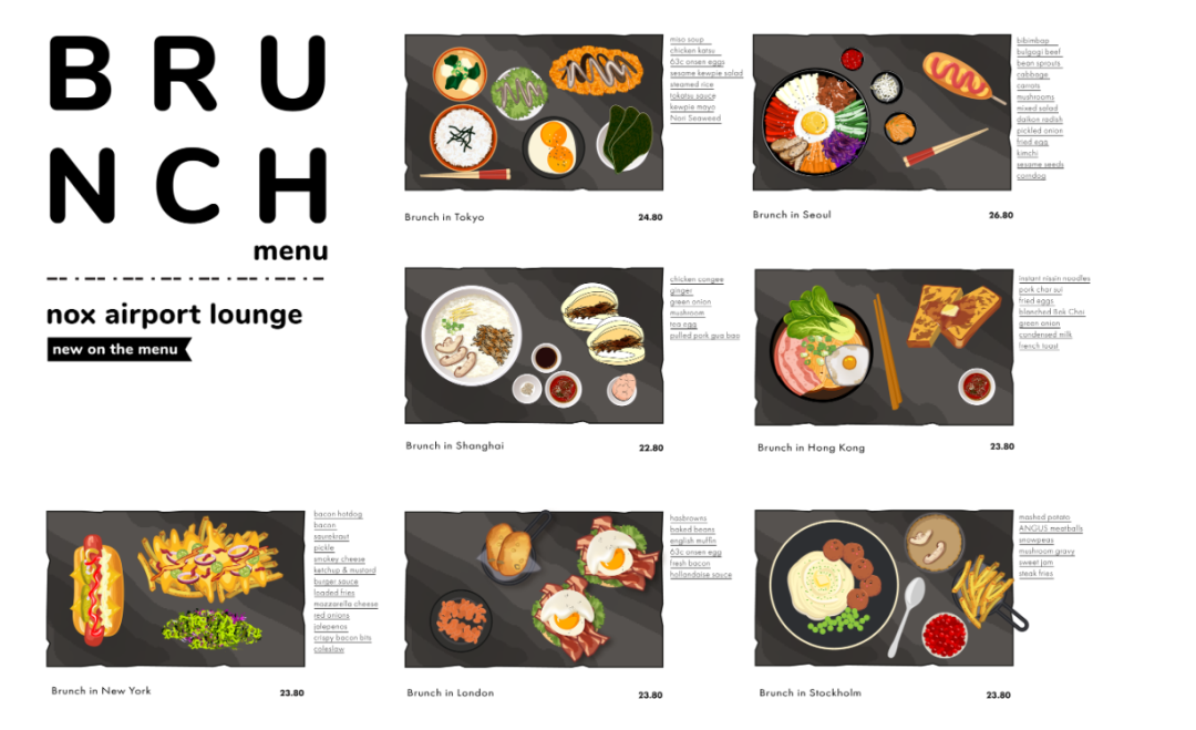 最近,【NOX】新推出了机场候机厅的主题Brunch,以机场候机室为灵感,汇聚各国特色美食!来看看墨妮卡都吃了些什么吧~