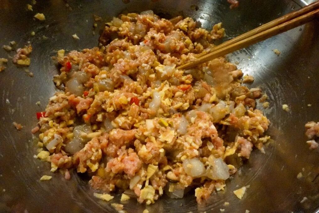 (包的时候会好包许多)用筷子按照顺时针方向开始搅拌~~~