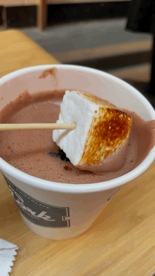 Mörk Chocolate的招牌产品就是【烟熏巧克力(Signatures)】,一杯招牌风味热巧+火烤棉花糖的售价为8刀。