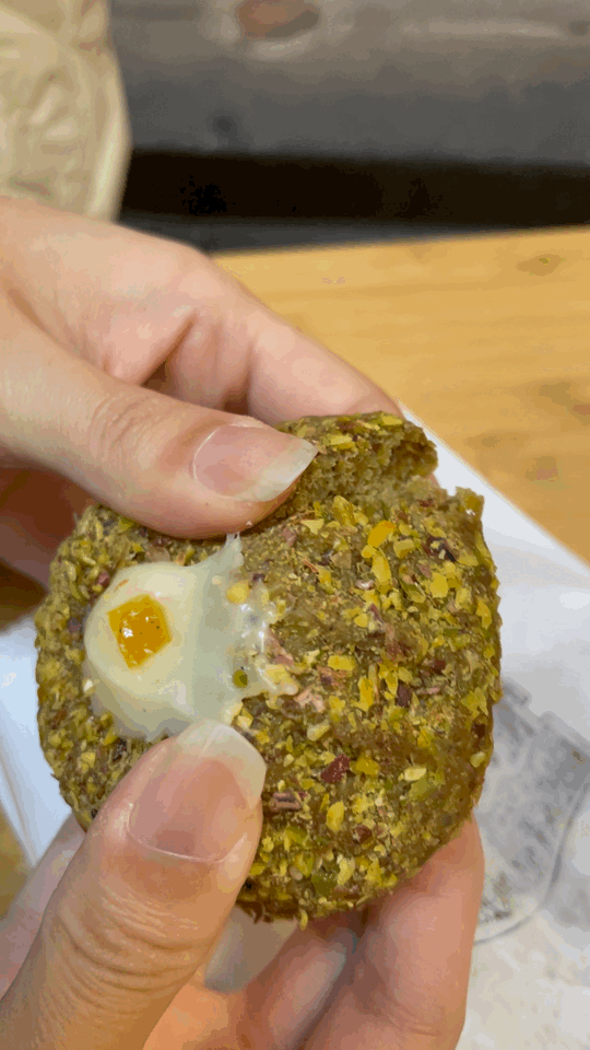 松软湿润的蛋糕里外都裹满了开心果碎,轻轻掰开就是酸甜的柚子酱。但墨妮卡个人觉得柚子酱有些偏甜,比较适合搭配Mörk Mocha一起吃!