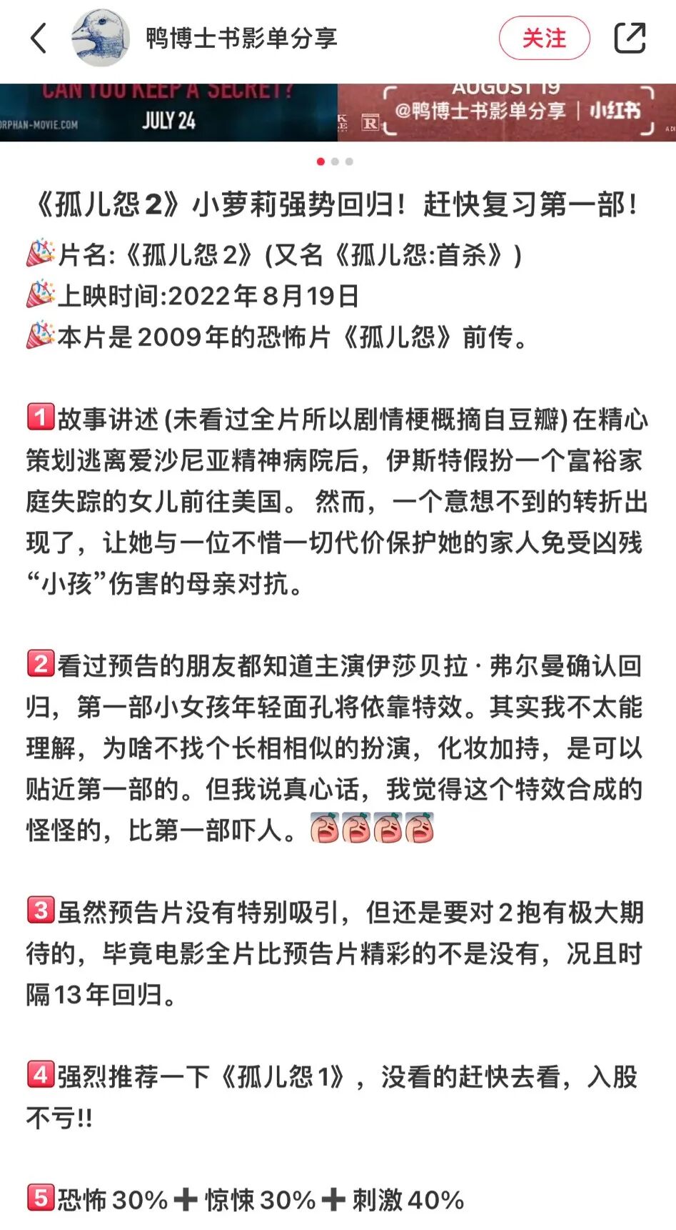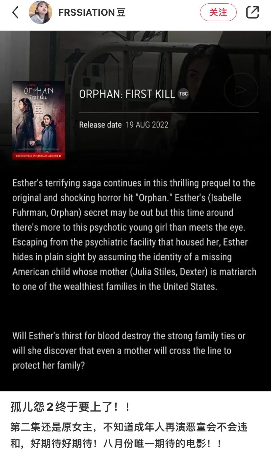 这个八月,《孤儿怨》即将强势回归!第二部会是2009年经典惊悚电影《孤儿怨》的前传。