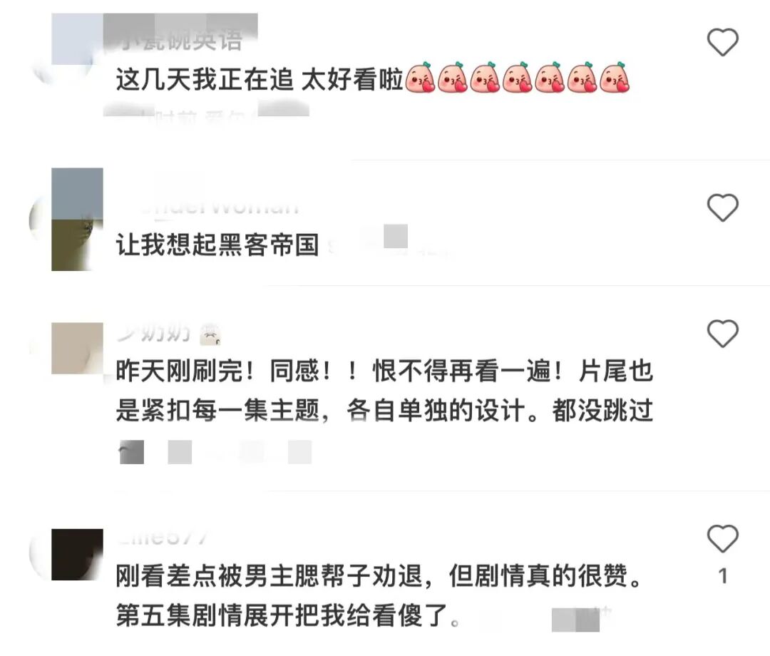 由于这部剧于本月5日已经上线,不少网友看后都给出了超高评价:“一口气刷完!”、“刚刷完还恨不得再看一遍!”