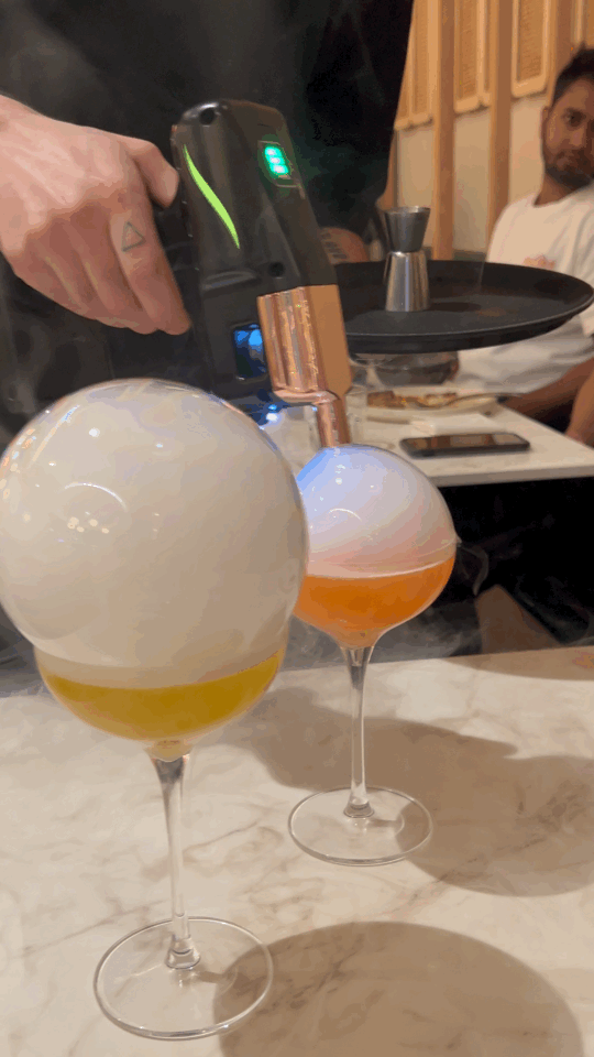 老墨点了它家推荐的果汁味饮品Blood Rose (这款不含酒精),酸酸甜甜很适合女孩子~最重要的是这治愈的泡泡,仙气飘飘,还自带云雾缭绕特效,冲这颜值也一定要点!