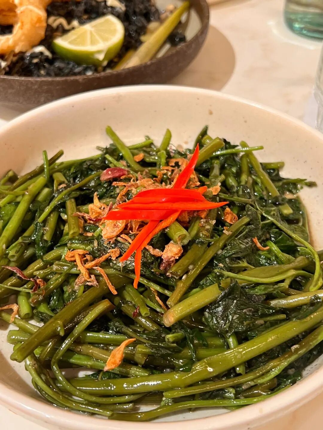 看似普普通通的空心菜,没想到搭配上辣椒和小虾米的鲜香,香嫩脆爽还入味,再来碗米饭,老墨还能接着炫!