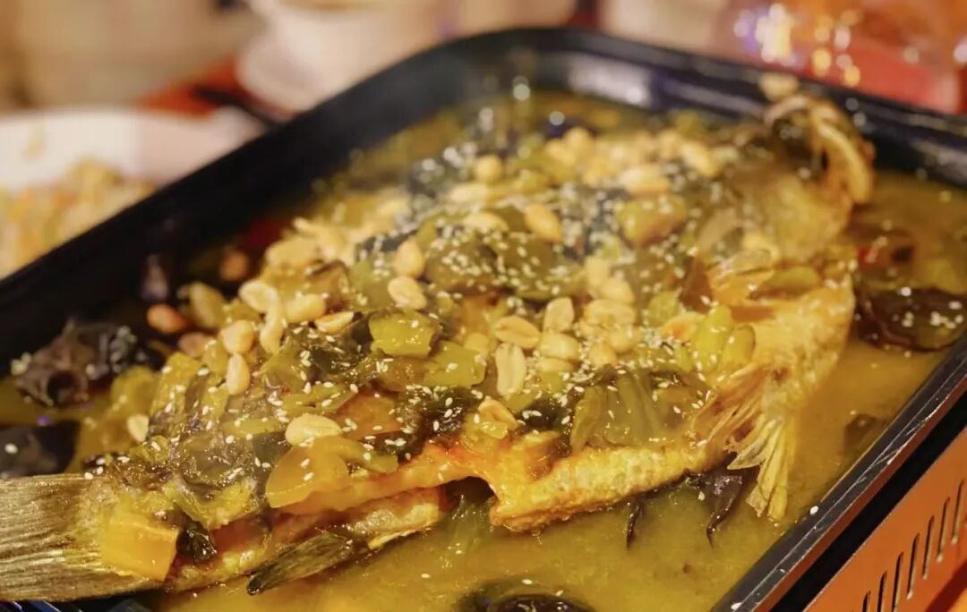 店内经典菜品秘制烤鱼有五种口味的可以选择,香辣泡椒豆豉酸菜藤椒,再配上秘制酱料,鱼肉外酥里嫩,超级过瘾!