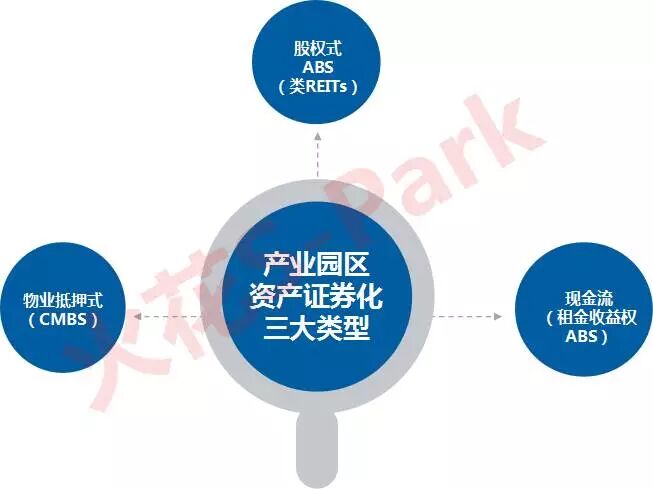 现阶段,产业地产资产证券化可能有三种形式:基于股权的重资产模式证券化(类REITs)、基于物业抵押形式的贷款证券化(CMBS)和基于园区现金流的证券化(轻资产式租金收益权ABS)。