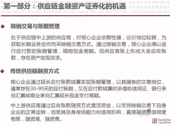 围绕核心企业信用反向延伸的供应链金融资产证券化,是以供应商为核心的应收账款资产证券化基础上展开的供应链融资创新模式,在上游供应商回笼应收账款的前提下,实现核心企业在应付账期和现金流上的有效管理。通过资产证券化这一金融工具,降低供应链两端的综合成本,优化企业报表,平衡供应链上下游企业之间的利益,促进闭环产业链的良性发展。