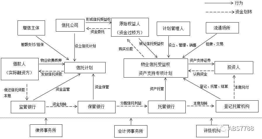 以物业费作为基础资产/底层基础发行资产支持证券一般通过两种交易结构来操作,一种是普通的单一SPV结构,另一种是双SPV结构,在双SPV结构中,除了企业资产证券化法定的SPV专项计划外,另一个SPV既可以是信托也可以是委贷。
