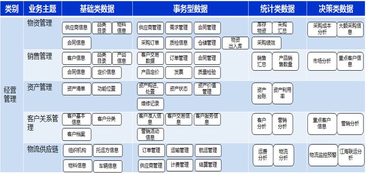 1、纵向:满足战略管控、经营管控、生产执行的三类数据主题