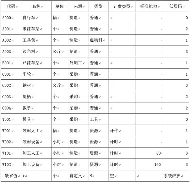 (见“‘自行车’单层物料清单”)“装配人工”是计件资源,而且其父项“自行车”的单位是“辆”。