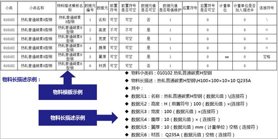 2) 能用小类名称作为物料名称的,不再使用其他名称,比如碳素结构钢板。