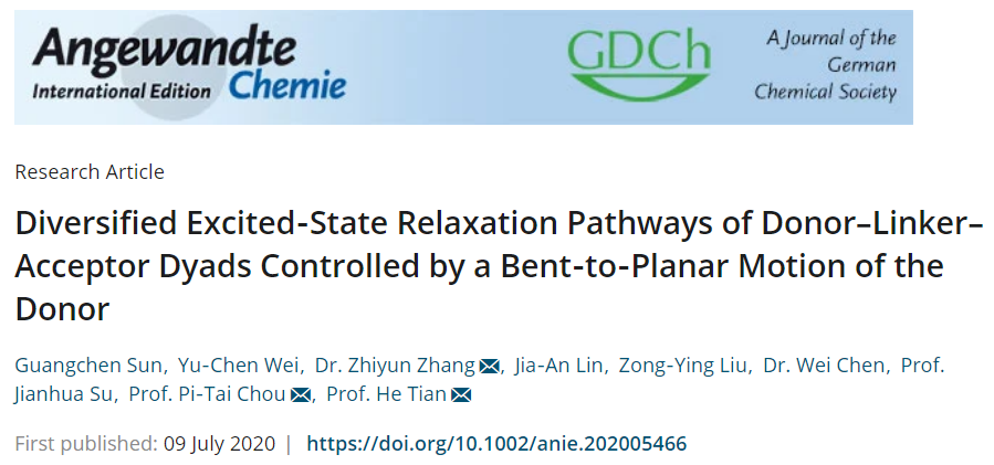 受此启发,该课题组创新性地将DPAC作为双通道电子/能量给体构建新的D-L-A体系,其中给体单元DPAC的激发态弯曲到近平面结构的弛豫过程可以被用来调控激发态电子/能量传递的过程。在分子设计策略上,通过调节受体A1~A5的能隙和前沿轨道能级,设计并合成了一系列新的D-L-A结构DLA1~DLA5,从而实现了具有多种发光性质的可调控的光致电子/能量转移过程。运用稳态和瞬态光谱,系统地研究了激发态电子传递和能量传递受双通道电子给体的影响(上图),包括从激发供体到受体的弯曲到平面的光致电子转移(PET)(氧化性PET)、荧光共振能量转移(FRET)、弯曲至平面状态的电子转移(PFET),以及从供体到受激受体的PET(还原性PET)。操控这种复杂的激发态动力学过程有望应用于精准示踪生物体内微环境的动态分布,比如充当传感器的VIE分子激发态构型变化受周围粘度和极性等因素的影响,成像信号(光谱/寿命)可以通过增强(能量传递)或抑制(电子转移)来读取。该论文由孙广尘博士和台湾大学博士研究生魏佑臣在特聘研究员张志云、田禾院士、台湾大学周必泰教授的共同指导下完成,并得到了苏建华教授的大力支持。此外,研究团队受邀在《化学科学》(Chem. Sci. 2020, 11, 7525)和《先进功能材料》(Adv. Funct. Mater., 2020, 30, 1902803)上,系统总结和阐述了二氢吩嗪VIE分子体系的结构特征、发光机制和应用性能,并展望了未来的发展。以上研究工作得到了国家自然科学基金、上海科技重大专项、上海自然科学基金等项目的支持。原文链接:https://onlinelibrary.wiley.com/doi/abs/10.1002/anie.202005466材料化学快讯建立了“3D打印”、“水凝胶”、“天然大分子”、“可逆共价键”、“纳米发电机”、“发光材料”、“自修复”、“肿瘤免疫治疗”等交流群,添加小编为好友(微信号:Damon_yazi,请备注:名字-单位-职称-研究方向),邀请入群。
