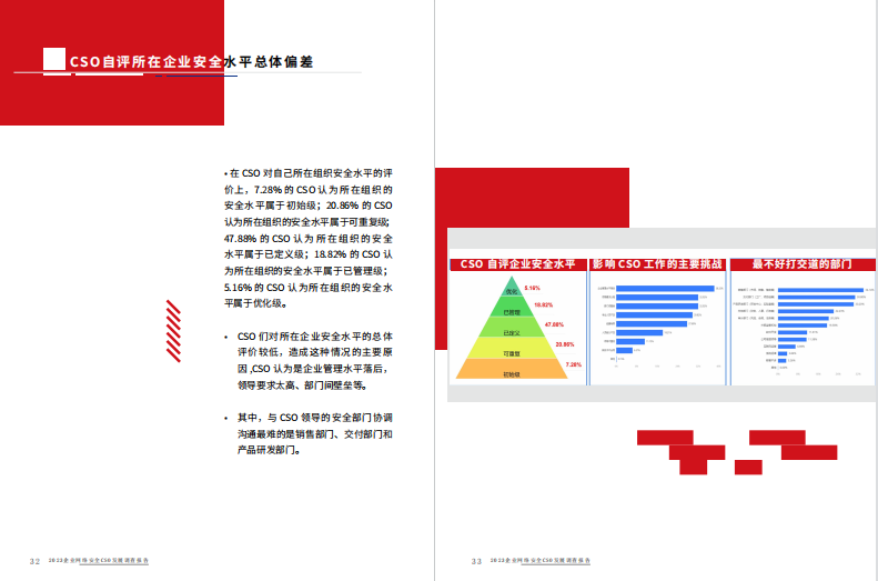 CSO,即Chief Security Officer,意为首席安全官或首席安全信息官,主管一个机构内部的网络安全事务。这一关键性职务目前在欧美国家的大型政企机构中已经普遍设置,并且具有较高的内部权力。同时,这一职务在国内也正在得到越来越多的认可与重视。