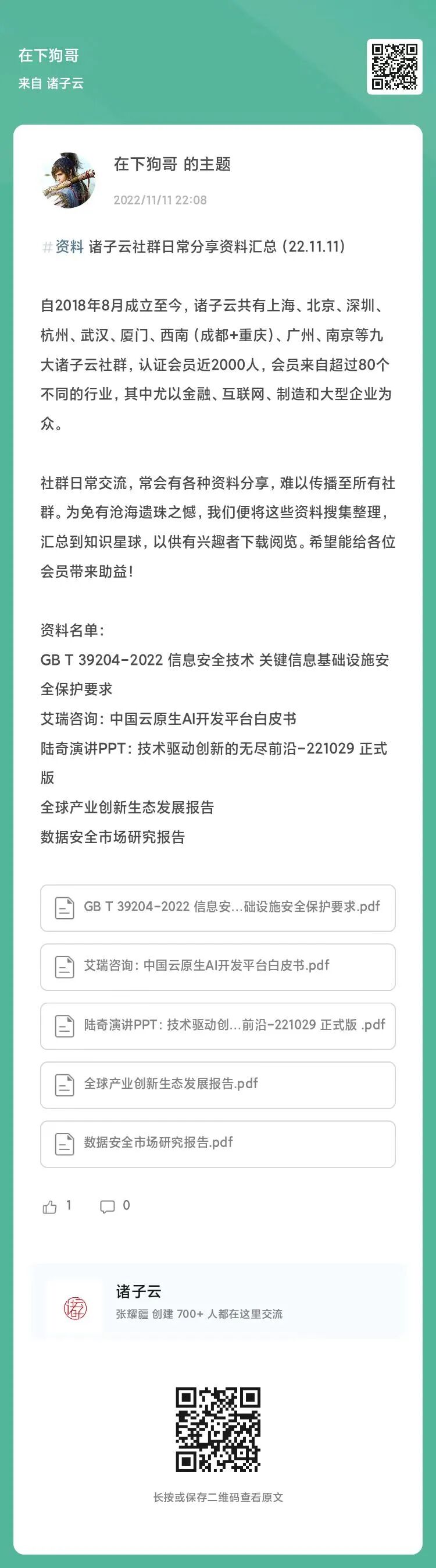 本期“在看”全文所述报告、话题、活动议题PPT等各类资料,都已在诸子云知识星球分类归档,即入可取。