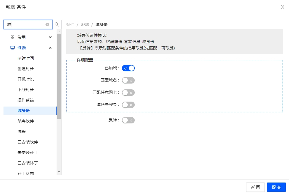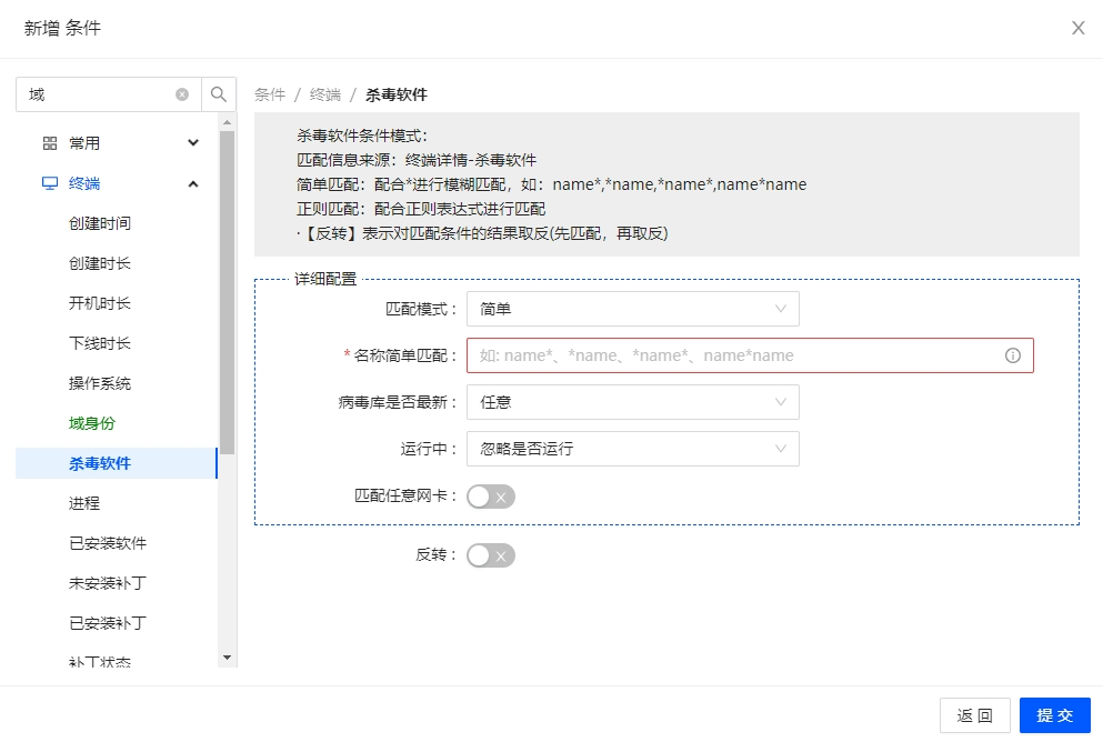 对 PC 类终端且非隔离网段的IP,进行合规状态检查,对未加域和未运行杀毒软件的终端分别标记为“不合规”。