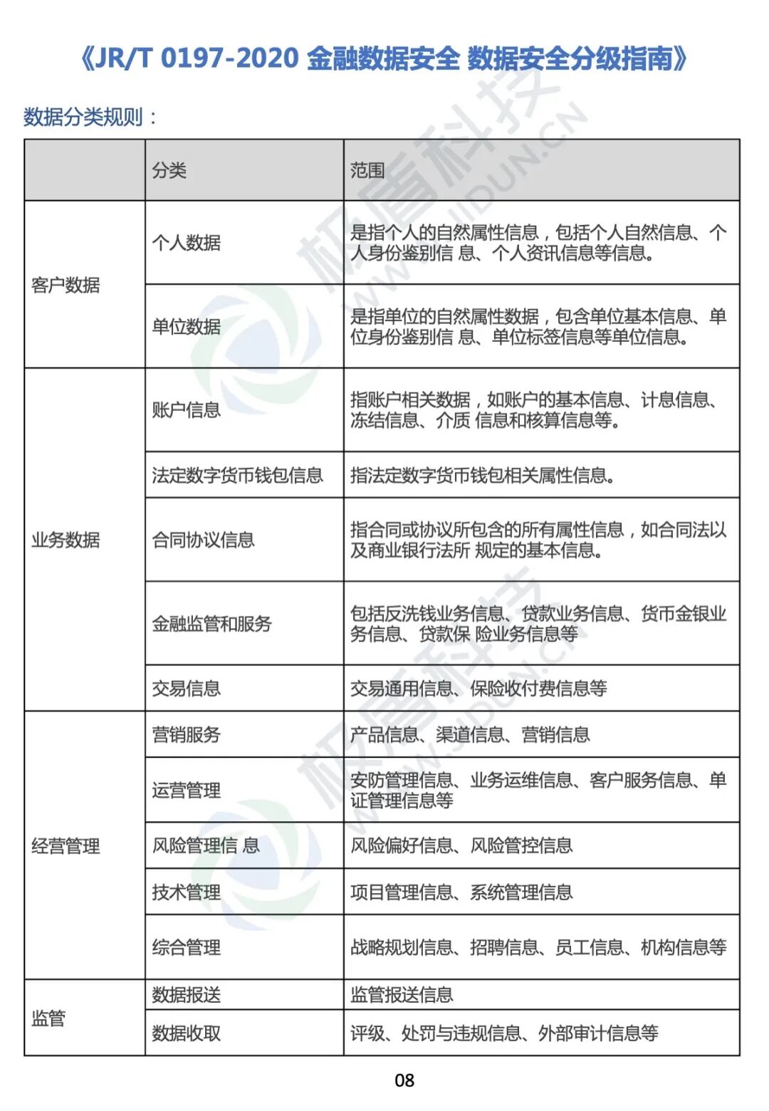本文将「国家层面、行业层面、地方层面」出台的12项数据分类分级标准指南进行总结汇编,希望对此领域感兴趣的同学能够起到一定借鉴作用。 如需下载标准汇编【PDF完整版】,以及各项数据分类分级标准指南完整版,关注下方“极盾科技”公众号,回复“分类分级”即可免费下载。请戳👇
