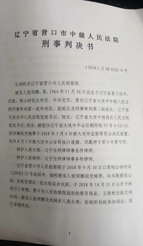 网上至今可查的刑事判决书中,详细列出了张明鹏任职瓦房店市法院院长期间的受贿情况,其中提到了上文中被查的高连民,其通过行贿张明鹏2008年被提拔为党组成员。十、2008年春节前,张明鹏在担任瓦房店市人民法院院长、党组书记期间,收受时任本院执行局局长高连民现金人民币10万元,后高连民为防止在全市法院系统执行局局长大轮换中被交流,请托张明鹏对其职务进行调整,张明鹏遂利用其职务便利进行沟通协调,高连民于2008年5月被任命为党组成员、审判委员会专职委员。十一、2008年8月间,张明鹏利用担任瓦房店市人民法院院长、党组书记的职务便利,在本院进行人事调整过程中为本院工作人员冯科谋取职务提拔,将其从办公室管理员提拔为办公室副主任,2011年3月又将冯科从办公室副主任提拔为办公室主任。张明鹏分别于2009年、2010年、2011年、2012年春节四次收受冯科给予的现金人民币30万元,于2011年6月收受冯科为其购买的丰田越野车一辆,该车价值经认定为人民币49.9万元。十二、2008年8月间,张明鹏利用担任瓦房店市人民法院院长、党组书记的职务便利,接受时任本院岗店法庭副庭长马祥庆的请托,为马祥庆职务晋升提供帮助,并收受马祥庆给予的现金人民币1万元,后马祥庆在人事调整过程中被任命为谢屯法庭庭长。十三、2008年8月,张明鹏在担任瓦房店市人民法院院长、党组书记期间,在本院进行人事调整过程中将时任长兴岛法庭庭长王德和调整担任刑事审判二庭庭长。2009年春节前,被告人张明鹏收受王德和给予的感谢费现金人民币1万元。十四、2008年7、8月间,张明鹏利用担任瓦房店市人民法院院长、党组书记的职务便利,接受时任本院立案庭副庭长连世文的请托,答应为其职务晋升提供帮助,收受连世文给予的现金人民币5000元,后连世文在人事调整过程中被任命为民事审判第二庭庭长。十五、2008年7、8月间,张明鹏利用担任瓦房店市人民法院院长、党组书记的职务便利,接受时任本院谢屯法庭庭长翟振凯的请托,答应为翟振凯的职务调整提供帮助,后翟振凯在人事调整过程中被任命为新华法庭庭长、审判委员会委员,张明鹏收受翟振凯给予的现金人民币2万元。十六、2008年8月,张明鹏在担任瓦房店市人民法院院长、党组书记期间,在本院进行人事调整过程中将时任刑事审判第一庭副庭长张殿臣调整担任李店法庭庭长,后于2009年春节前收受张殿臣给予的现金人民币1万元。十七、2008年年底,张明鹏在担任瓦房店市人民法院院长、党组书记期间,接受时任本院执行一庭副庭长张杰的请托,答应为其职务调整提供帮助,并收受张杰给予的现金人民币1万元;2009年1月,张杰被从执行一庭副庭长调整担任到行政庭副庭长。十八、2009年7月,张明鹏在担任瓦房店市人民法院院长、党组书记期间,将时任本院执行二庭庭长的高成君推荐提拔为本院执行局长,高成君在全市法院系统执行局局长任职交流中被任命为本院执行局长。2011年7月,张明鹏在为其父亲办寿期间收受高成君给予的现金人民币2万元。十九、2009年春节前,张明鹏在担任瓦房店市人民法院院长、党组书记期间,收受时任本院执行二庭副庭长姜新章给予的现金人民币2万元,利用职务便利为其竞聘领导岗位提供关照,姜新章在2011年4月的人事调整过程中被提拔任命为本院执行二庭庭长。二十、2010年春节前,张明鹏在担任瓦房店市人民法院院长、党组书记期间,收受时任本院岭东法庭审判员顾仁华给予的现金人民币1万元,利用职务便利为其竞聘领导岗位提供关照,顾仁华在2011年4月的人事调整过程中被提拔任命为岭东法庭副庭长。二十一、2011年4月,张明鹏担任瓦房店市人民法院院长、党组书记期间,时任长兴岛法庭审判员高原在本院人事调整过程中被提拔任命为复州城法庭副庭长。2011年秋天,张明鹏收受高原给予的内存人民币5万元中国银行储蓄卡一张并提现留用。![]()