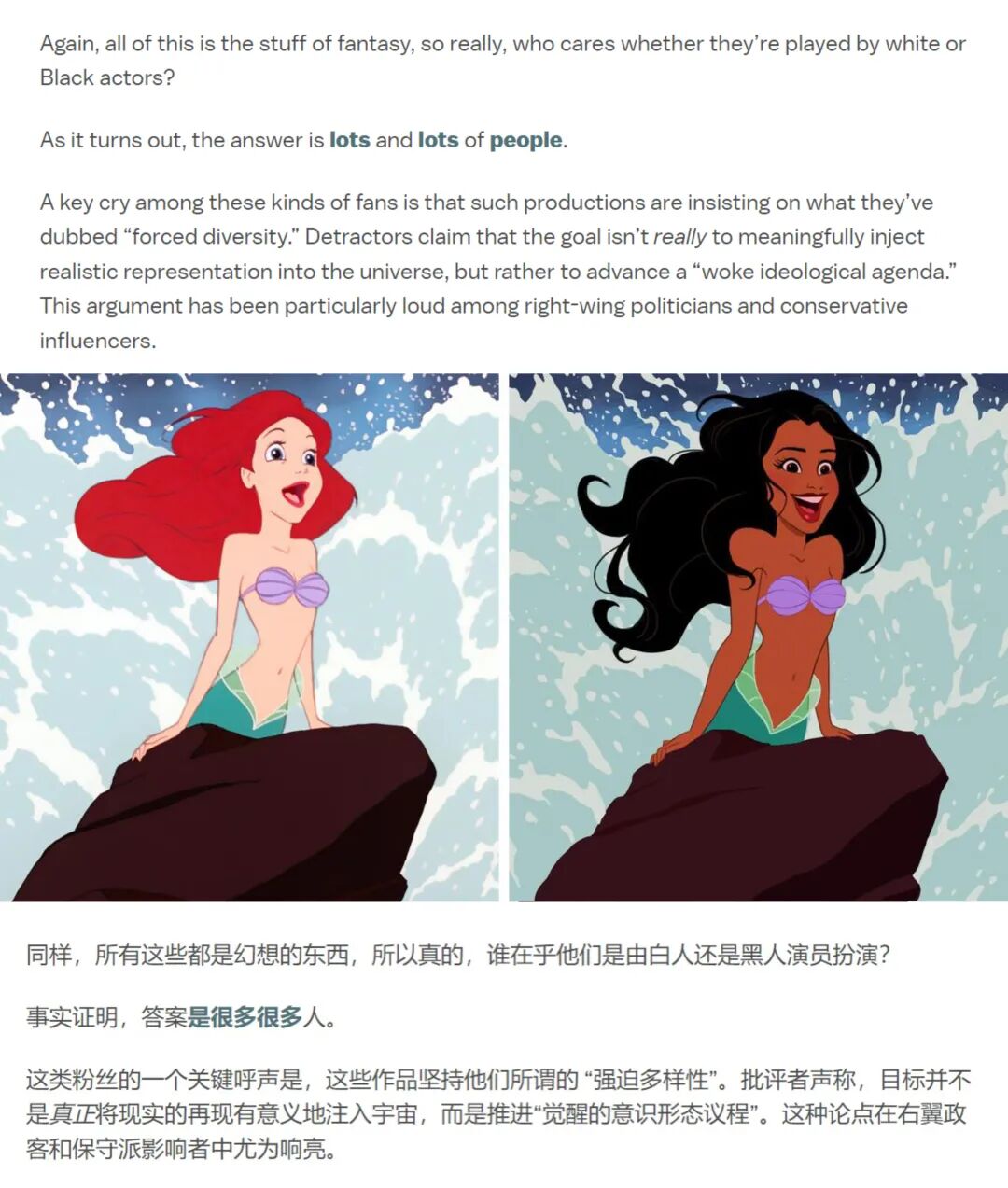 把显然是白人的小美人鱼角色换成黑人,这种操作里并不能看到新左派“为”在何处。