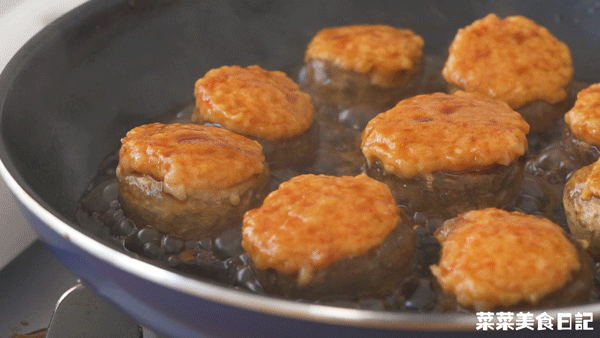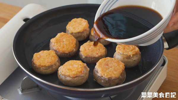 口蘑酿上虾滑后,煎一煎,调个照烧汁一焖就好。