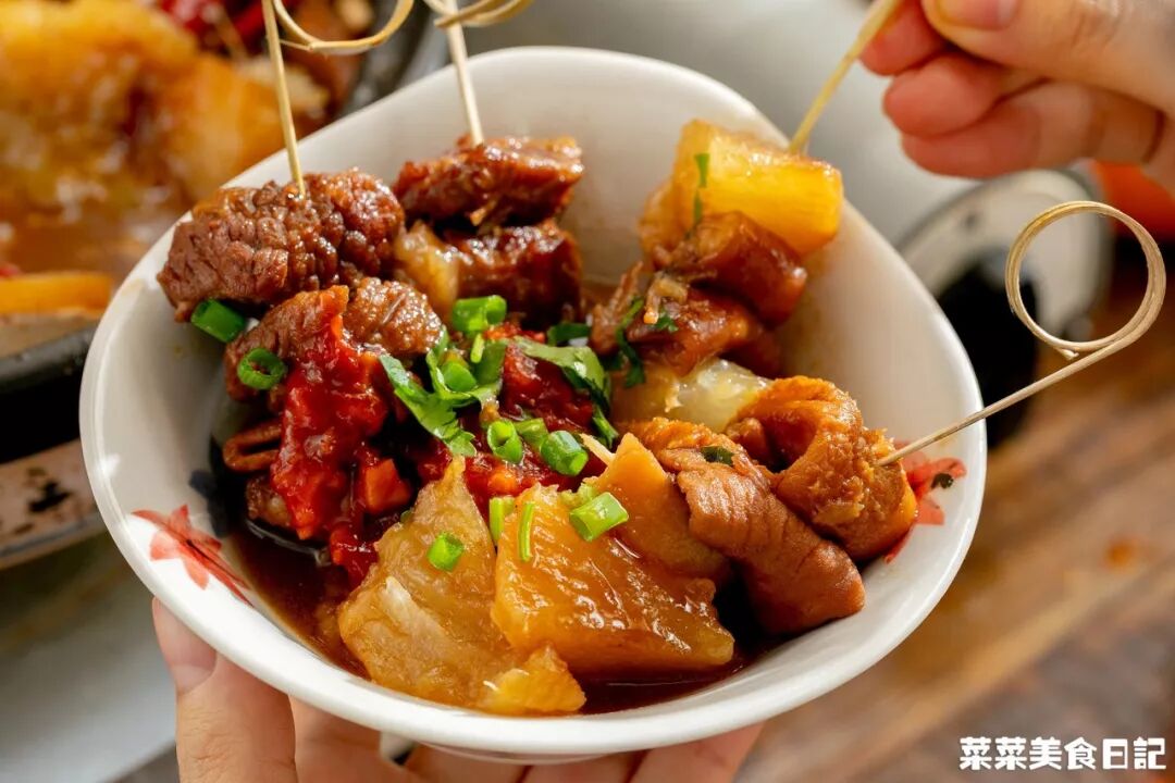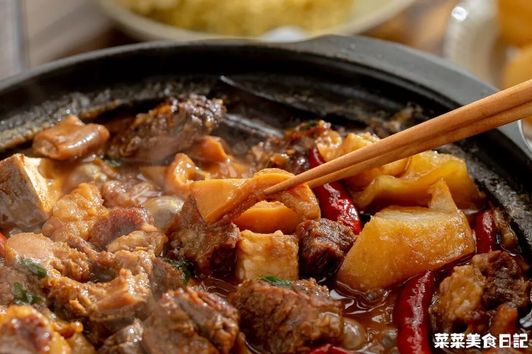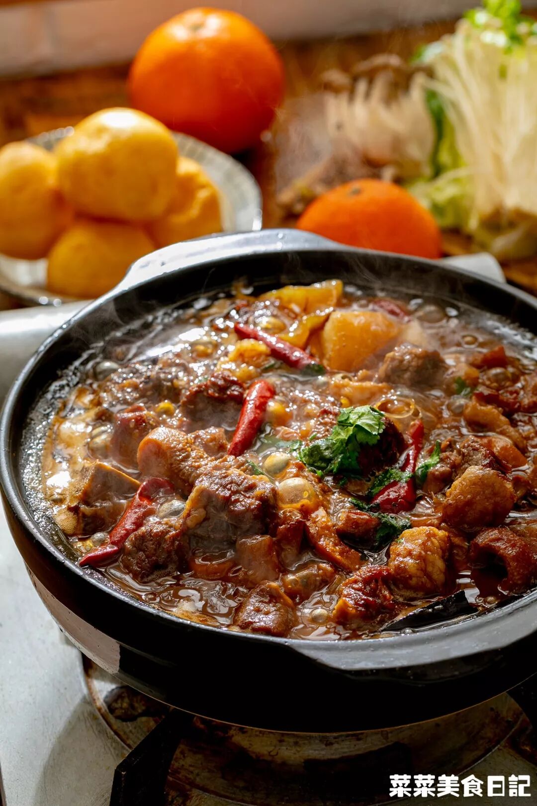 咕嘟咕嘟,街头小吃摇身一变成热腾的暖煲火锅,加倍的肉量,酥软地颤动翻滚,酱香浓郁。