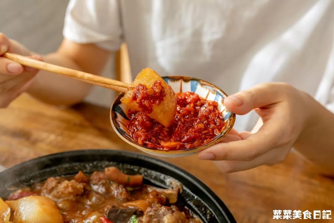 萝卜肉汁里炖到软烂,清甜被吊至最高点,吃起来比肉还过瘾。
