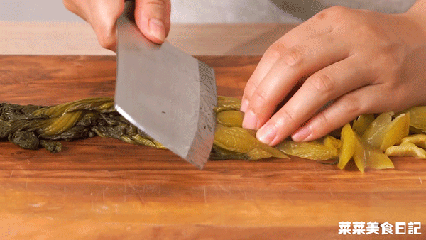 2.酸菜斜切成小片
