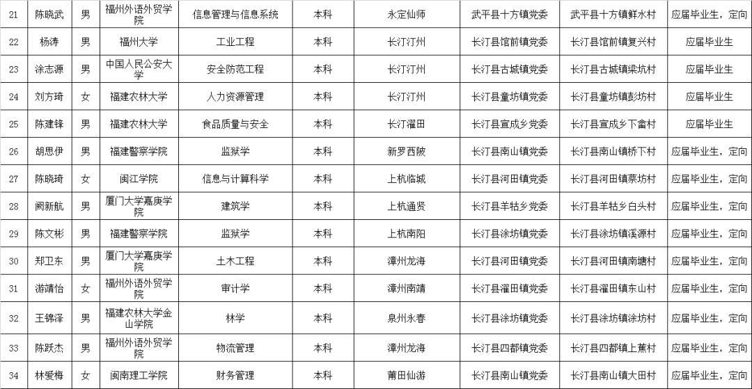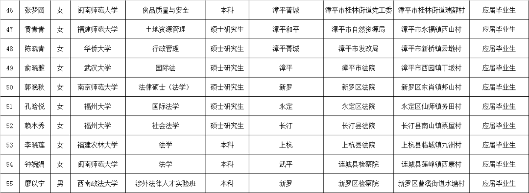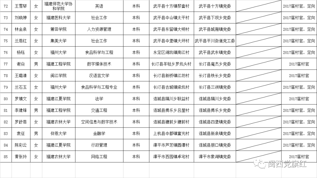 龙岩市2019年选调生分配安排名单(共85名)