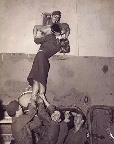 1945年的情人节,一个法国小女孩给了一个美国士兵轻轻的吻。
