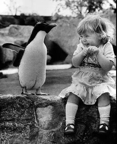 第一次见到企鹅宝宝的小丫头,高兴地手足都无措了。