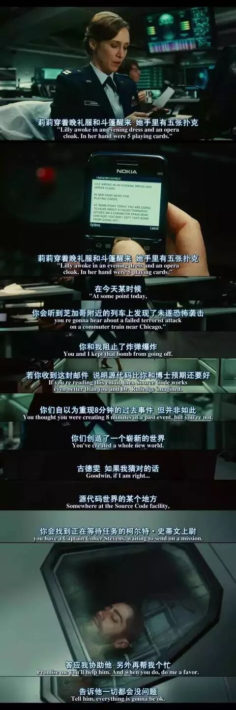 其实是科学团队希望能够通过史蒂文在肖恩的八分钟记忆里去寻找制造这次恐怖袭击的人的相关信息,因为在非源代码世界里,他放话说六小时后将有另外一次袭击。