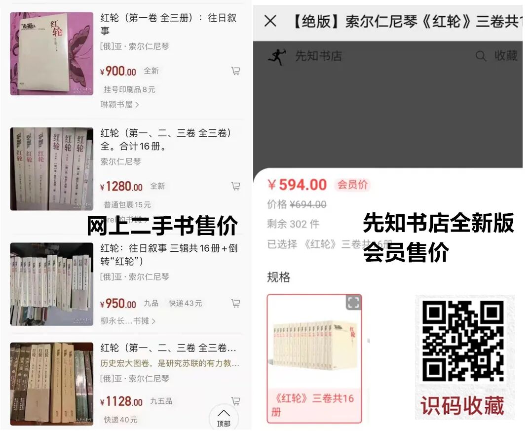 为此,先知书店经多方努力争取,集齐目前中文最全《红轮》版本(全三卷、16册版),共争取到500套,好书难得,值得珍藏。识别下图二维码,即可一键收藏独家绝版书(附赠定制书签)。