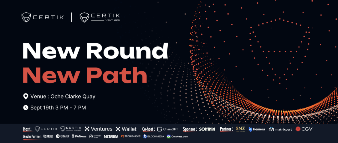 9月19日14:00至19:00,头部Web3.0安全机构CertiK将携手CertiK Ventures、OKX Ventures和OKX Wallet联合举办一场以“New Round, New Path”为主题的活动。本次活动CertiK将宣布对产品和服务进行全面升级,包括推出全链路安全解决方案,免费开放多样化的安全工具,旨在回馈社区,为Web3.0生态提供全周期的安全保障。同时,CertiK还将宣布更多信息,值得一提的是,近期备受瞩目的CertiK Ventures将在活动期间首次披露资金规模,全力以赴支持相关领域的创新项目。