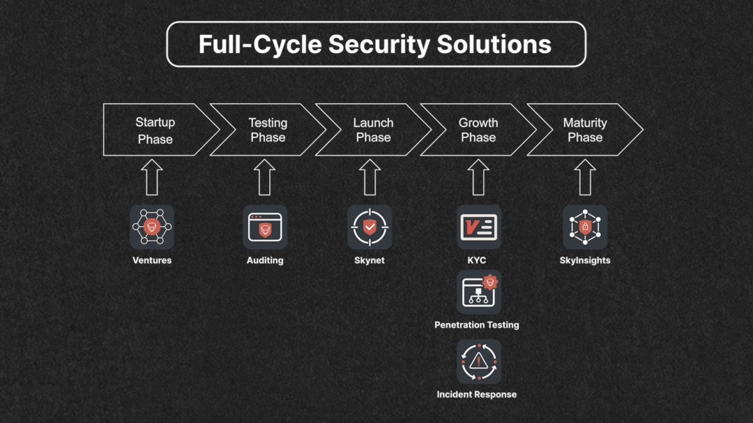 CertiK此次重磅推进产品升级,主要目的是覆盖项目生长全周期,为项目提供全链路安全支持。在初创阶段,CertiK Ventures为项目提供资金和技术支持,以促进其快速成长。当项目进入测试阶段,CertiK的专业审计服务确保代码的核心安全性。项目上线后,Skynet平台为其提供安全评级,帮助项目优化安全架构,提升市场关注度,并通过Skynet Quest让用户更深入地了解项目。在成长阶段,CertiK的KYC徽章服务帮助项目团队建立与社区及投资者之间的信任,同时渗透测试和事件响应服务为项目运营提供持续的安全防护,通过实时监控和漏洞挖掘确保项目安全。对于成熟阶段的项目,CertiK根据项目方需求,提供合规性、反洗钱和链上监控的定制化服务,支持项目在复杂的Web3.0环境中稳健运营。