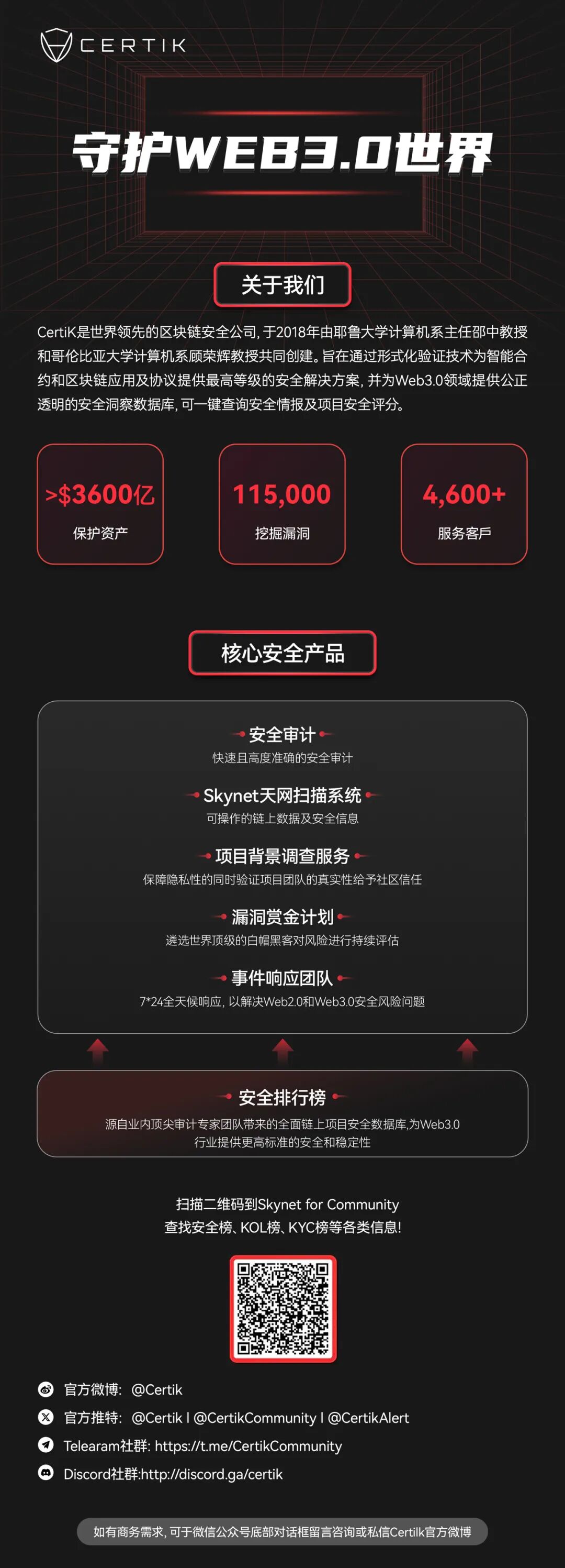 CertiK的市场监控工具CertiK Alert定期提供关于加密领域的黑客攻击、骗局和闪电贷等事件的更新,旨在保护投资者的利益。