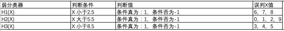 基于d2的样本权限,我们可以重新计算模型H1(x)、H2(x)、H3(x)的误差值大小,很明显H3(x)模型误差最小为:0.2143;