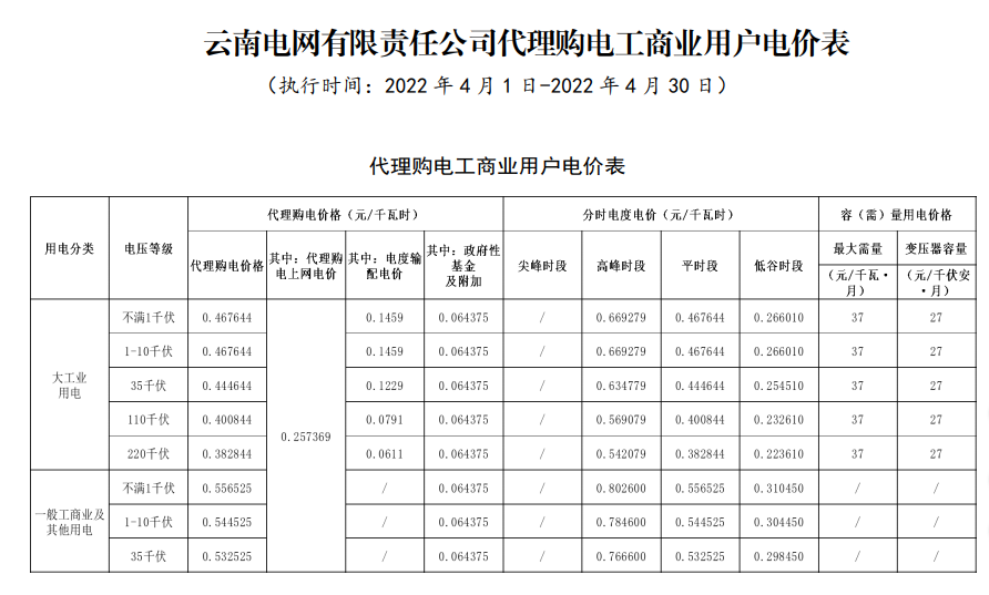 以下附28省市区域4月代理购电电价详情:
