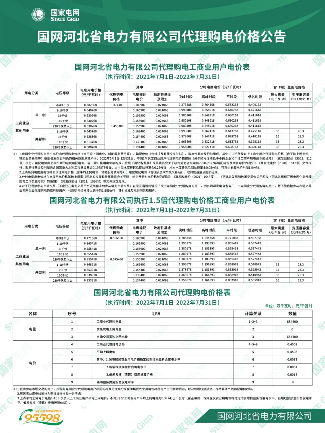以下附全国各省7月代理购电电价详情: