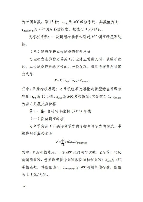 每月根据发电侧并网主体、新型储能 AGC投运情况和可调节容量给予补偿,补偿费用为360元/兆瓦·月。