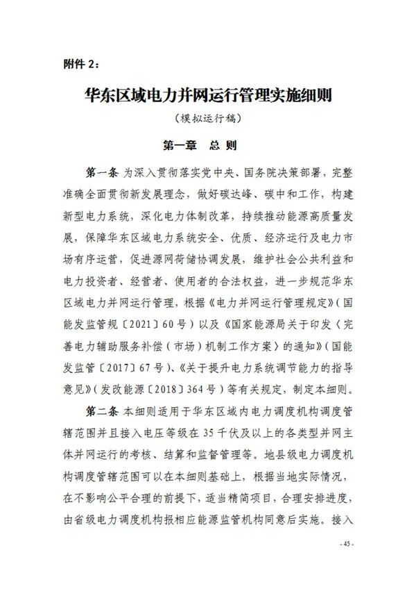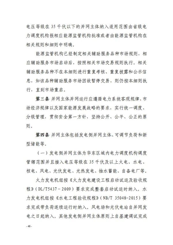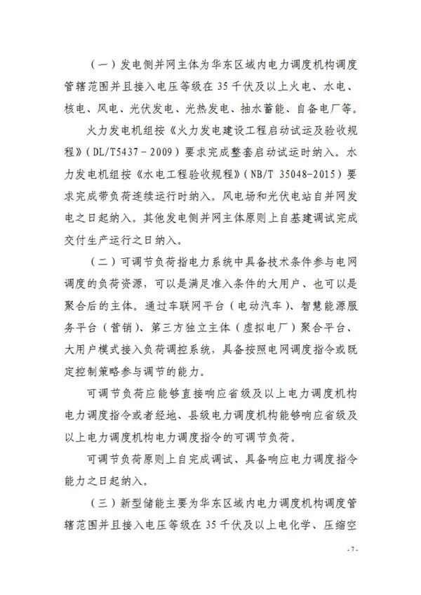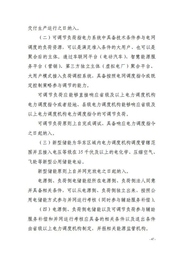 《华东区域电力辅助服务管理实施细则(模拟运行稿)》指出,并网主体包括发电侧并网主体、可调节负荷和新型储能等。电源侧、负荷侧电储能经所在电源侧、负荷侧法人同意并具备相关条件,可以从电源侧、负荷侧独立出来,按照公用电储能方式参与辅助服务补偿(同时参与并网运行考核)。