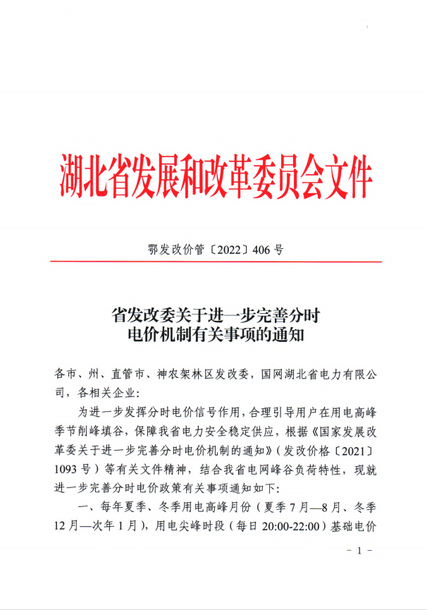 为贯彻《国家发展改革委关于进一步完善分时电价机制的通知》(发改价格〔2021〕1093号)要求,充分发挥分时电价信号作用,更好引导用户调整用电负荷、改善电力供需状况、促进新能源消纳,服务以新能源为主体的新型电力系统建设,经省政府同意,现就我省进一步完善分时电价机制有关事项通知如下: