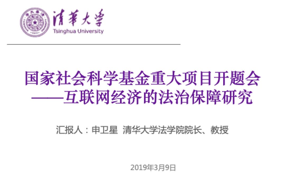 国家社会科学基金重大项目《互联网经济的法治保障研究》开题会暨专题学术研讨会,于2019年3月9日在清华大学法学院举行。